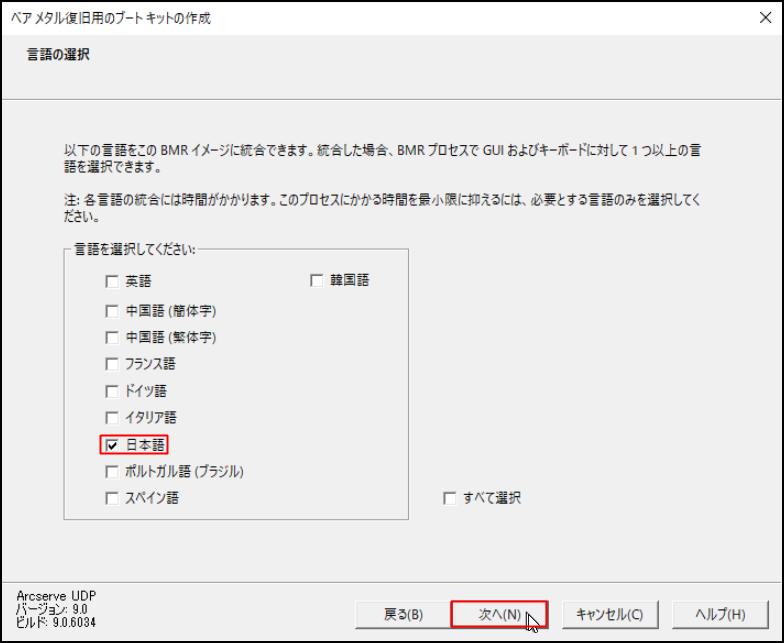 1.Arcserveのバージョンをアップグレード後、再度、復旧メディアを作成する必要があります。