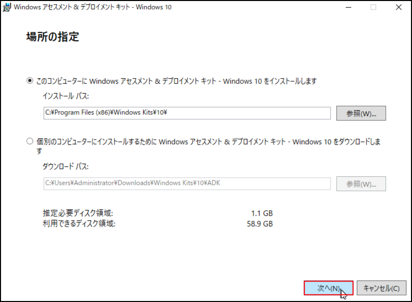 Windows 10 ADK : Windows 10、Server 2016、Server 2019用