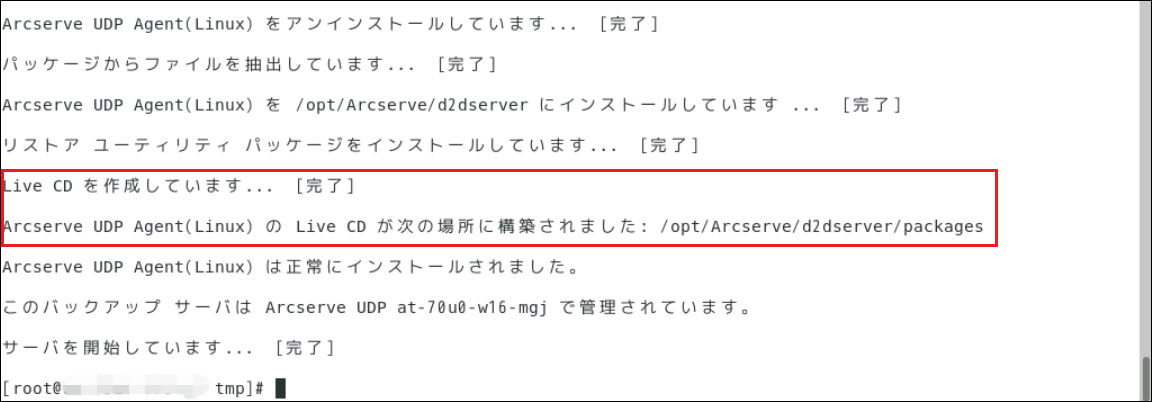 2./opt/Arcserve/d2dserver/packages 配下にUDP_Agent_Linux-LiveCD.isoがあることを確認します。
