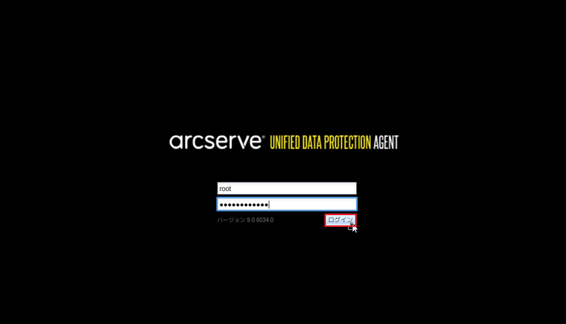 2.「https ://[arcserveがインストールされたバックアップ対象のLinuxサーバーのIPアドレス]:8014」を実行します。