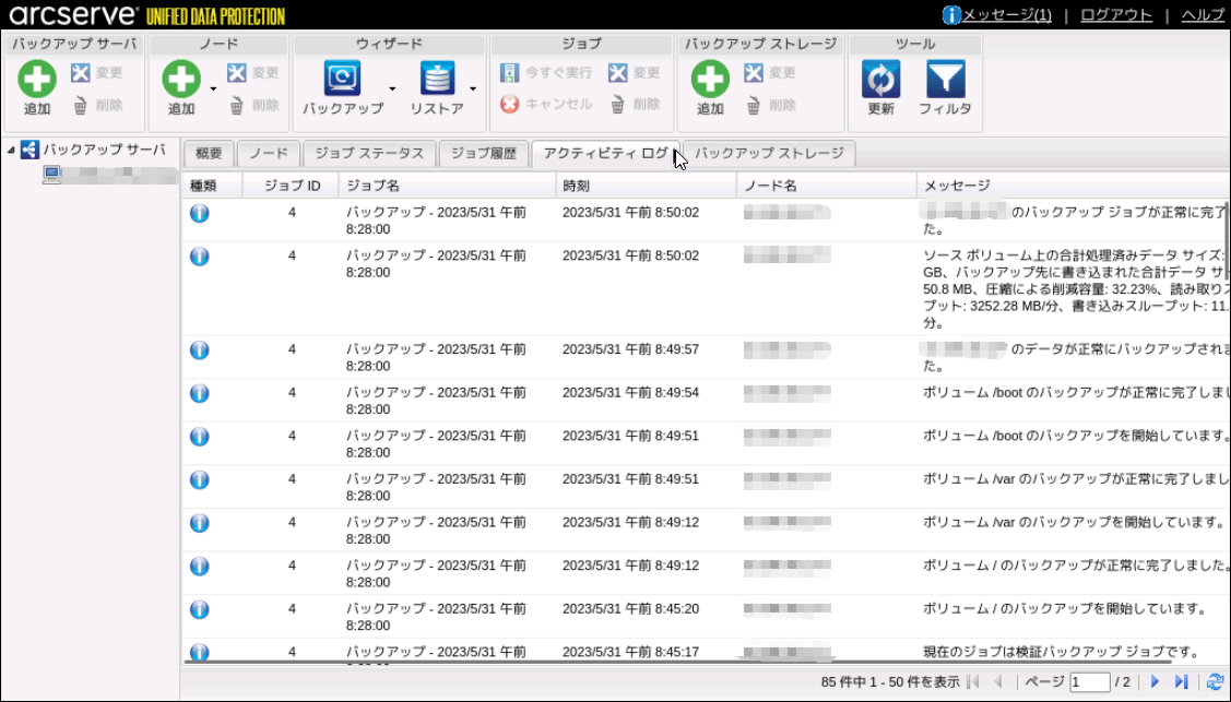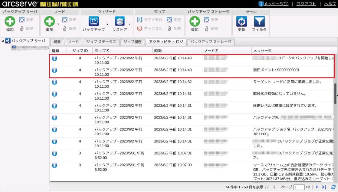 4.2.4.1. バックアップスケジュール、ログの確認¶