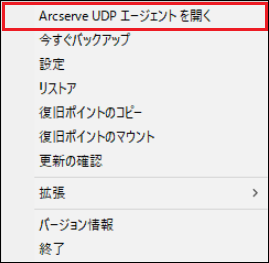 2.[Arcserve UDPエージェントを開く]をクリックします。