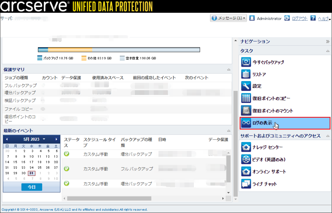 4.1.4.1. バックアップスケジュール、ログの確認¶