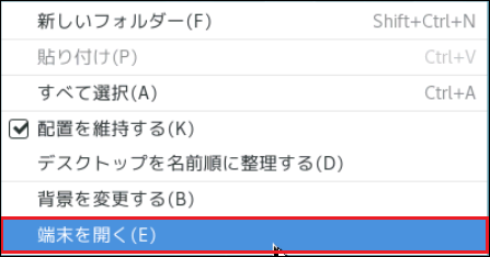 3.バックアップ対象のLinuxサーバーにログインします。この後の作業をコマンドで実行するため、デスクトップ上で端末エミュレーターを開きます。以下のコマンドでの作業はこのバックアップ対象のLinuxサーバーで実施します。