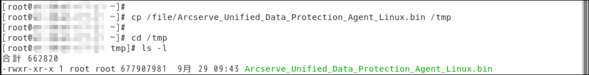 $ cp /file/Arcserve_Unified_Data_Protection_Agent_Linux.bin /tmp