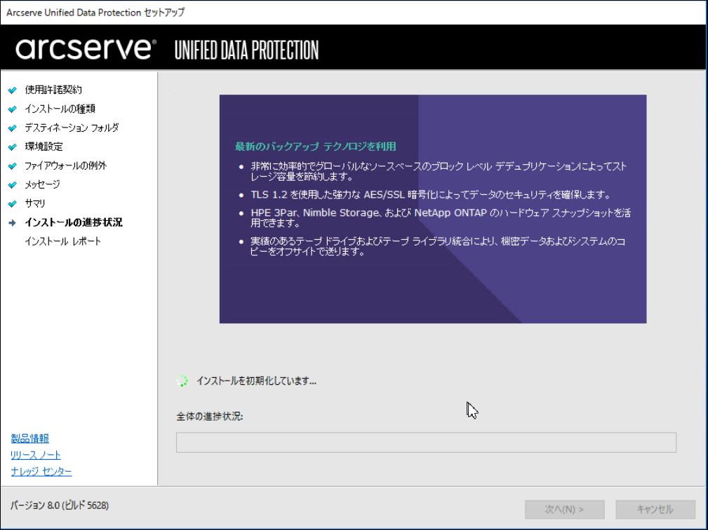 8.セットアップの検証が完了し、インストールの準備が整うと、以下の画面が表示されます。