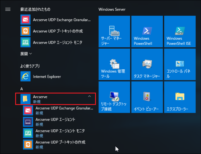12.OSのアプリケーション一覧表示機能で、以下のようなArcserveの項目が表示されていることを確認します。