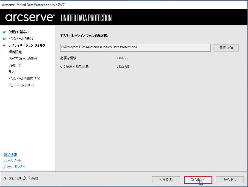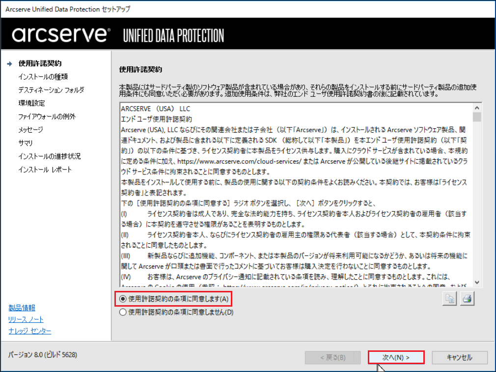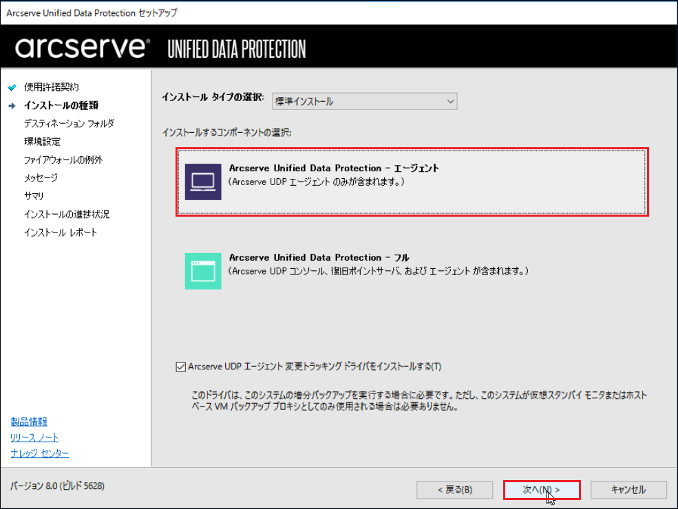 ※ここでは、「Arcserve UDPエージェント」のみ、インストールします。