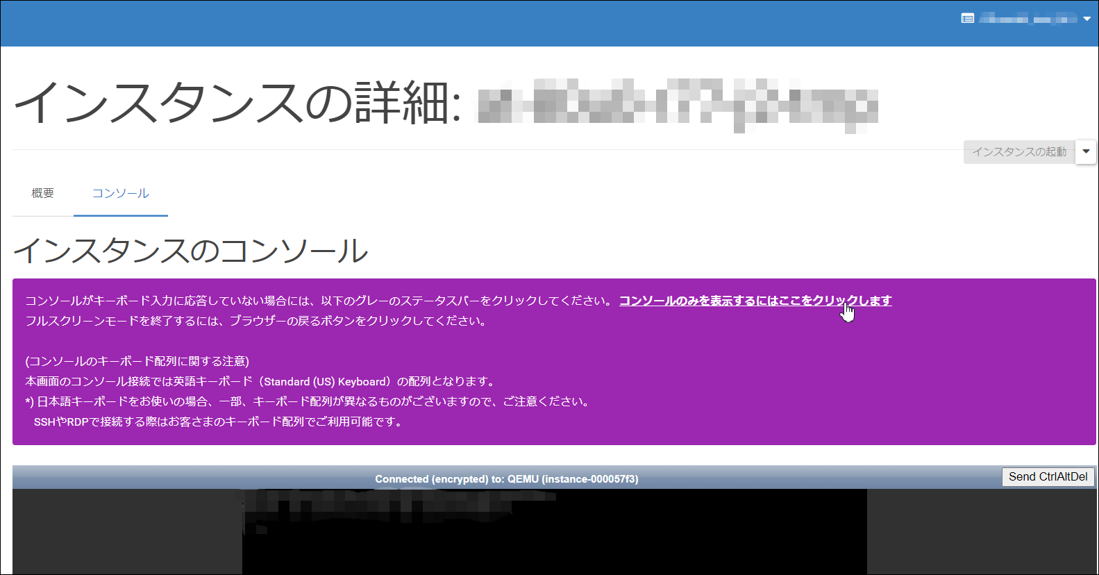 10.インスタンスの詳細画面にてインスタンス画面に入ります。