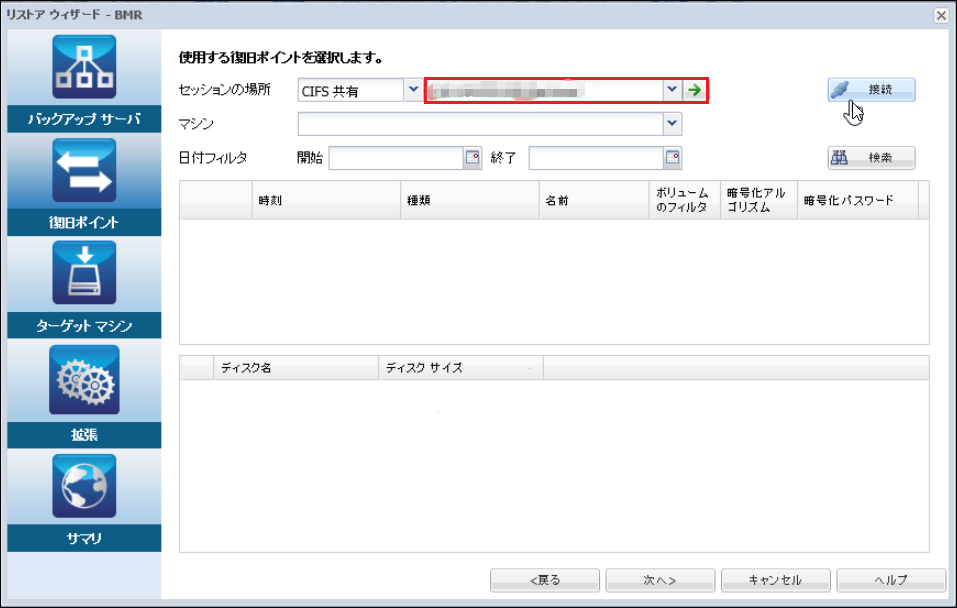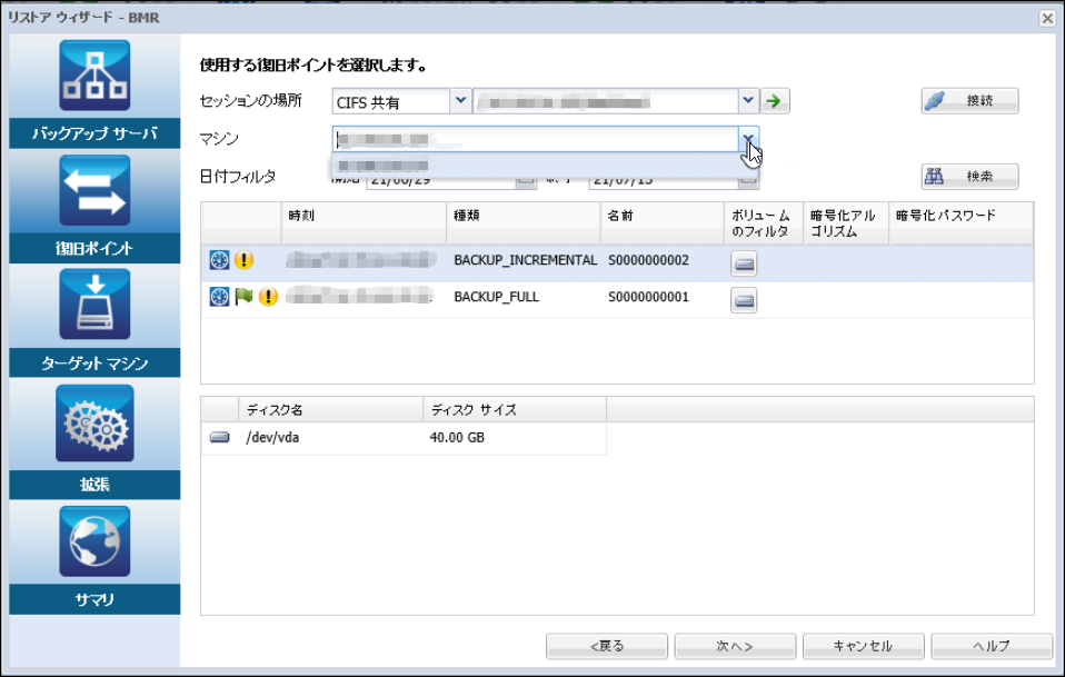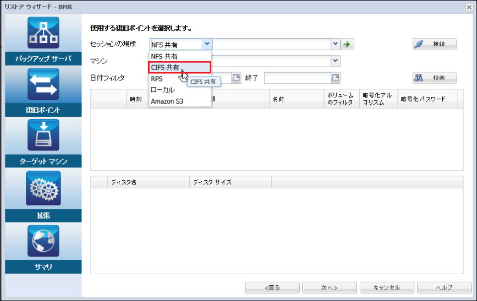 (※復旧ポイントサーバーを用いたリストア方法では、[RPS]を選択します。)