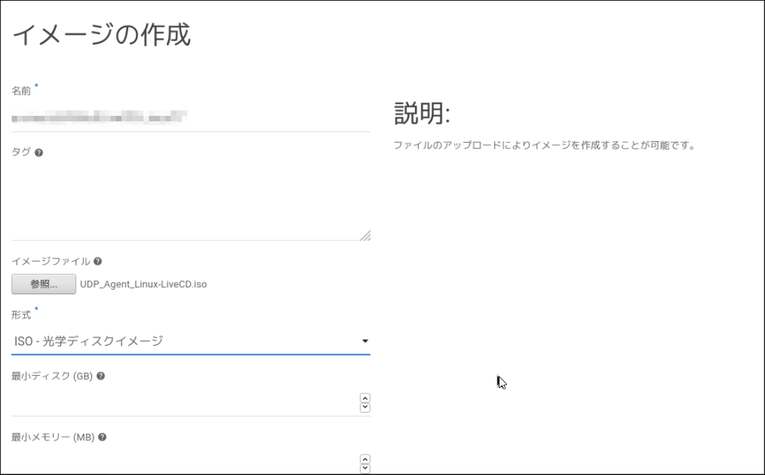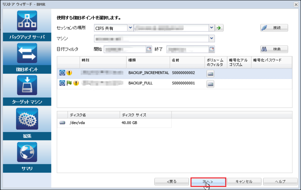 イメージ名:先に作成したArcserveの復旧メディアのイメージを選択