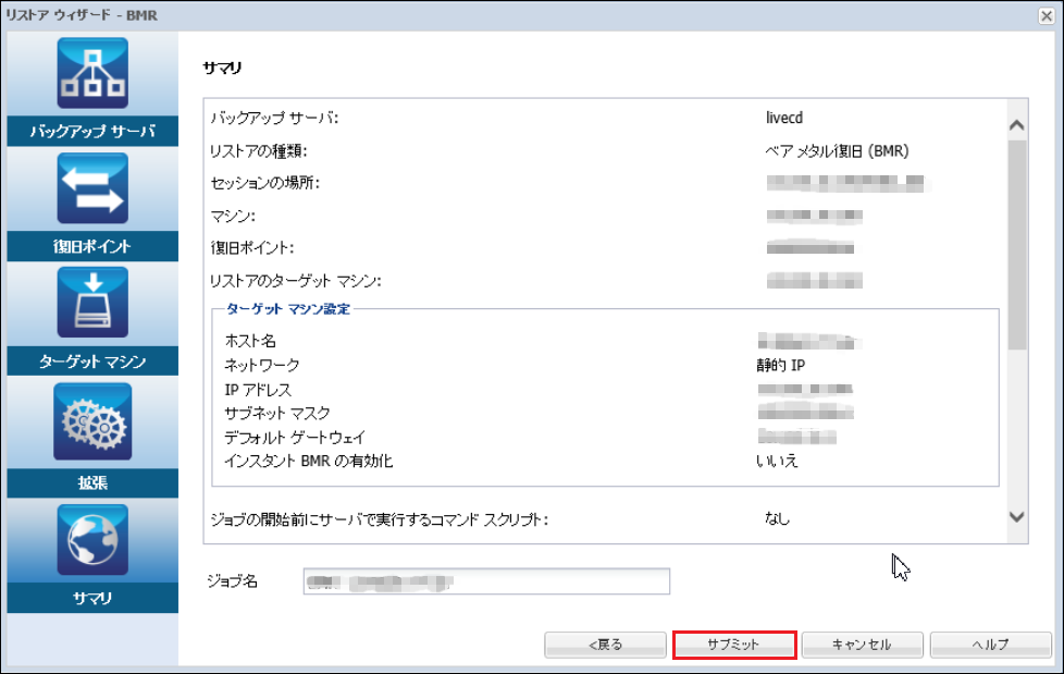 IPアドレス:最終的にリストアされるサーバーに設定するIPアドレス