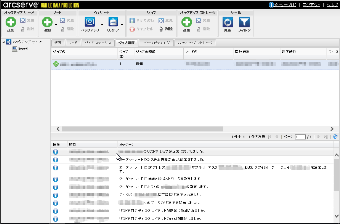 23.[ジョブ履歴]タブにてリストアジョブが完了したことを確認します。