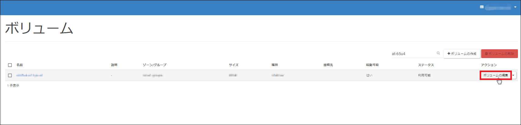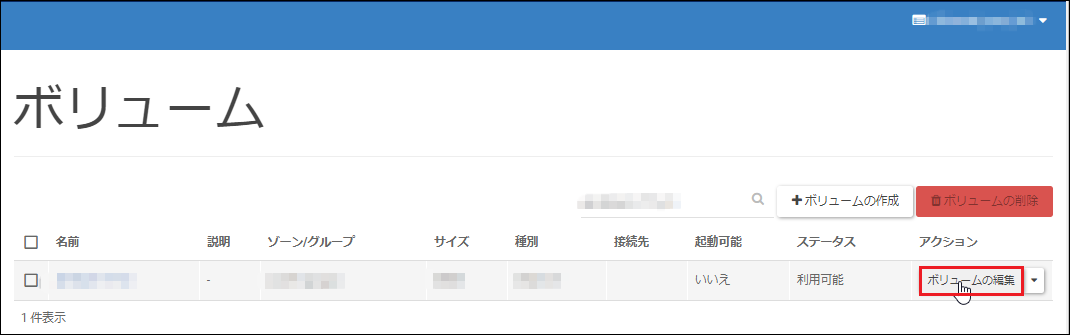 作成したボリュームの[ボリュームの編集]をクリックします。