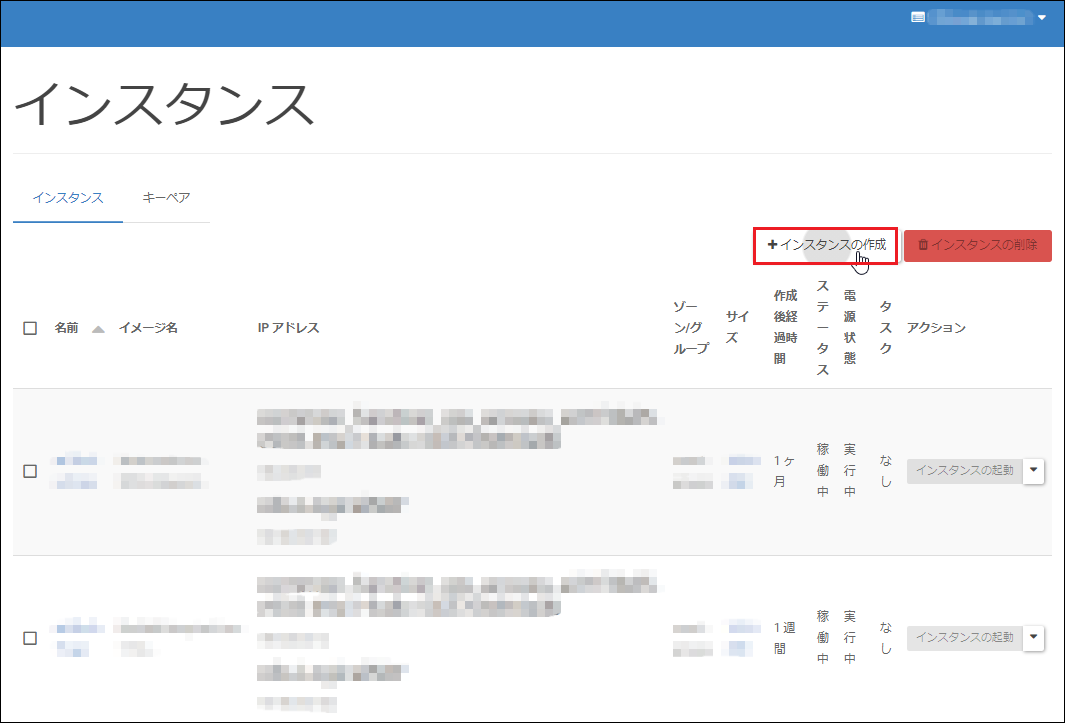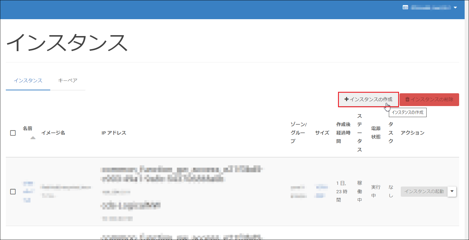 2.[サーバーインスタンス]—[インスタンス]—[インスタンスの作成]をクリックします。