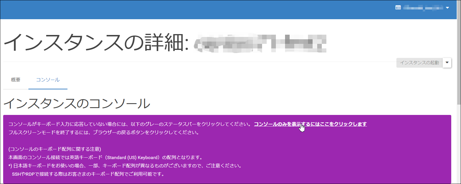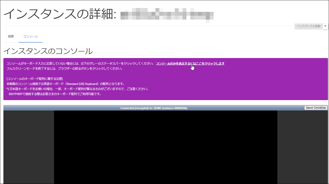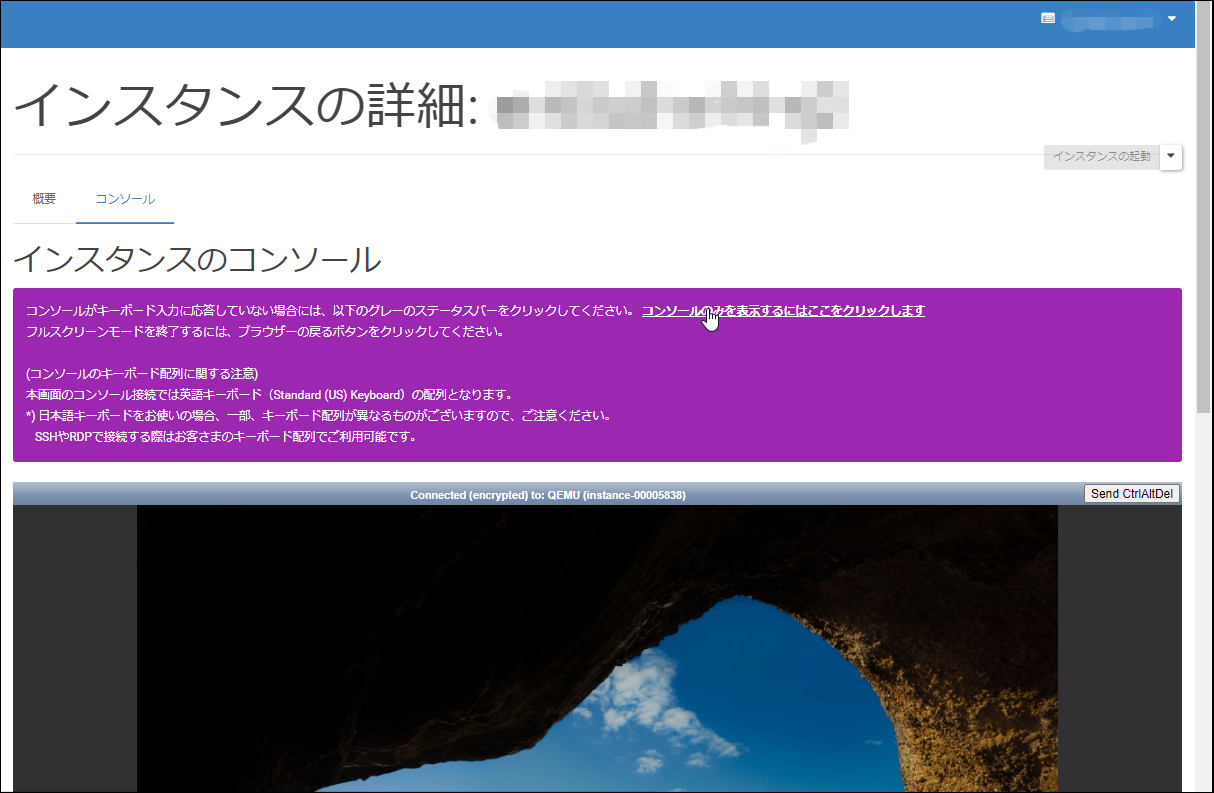 7.インスタンスの詳細画面にてインスタンス画面に入ります。