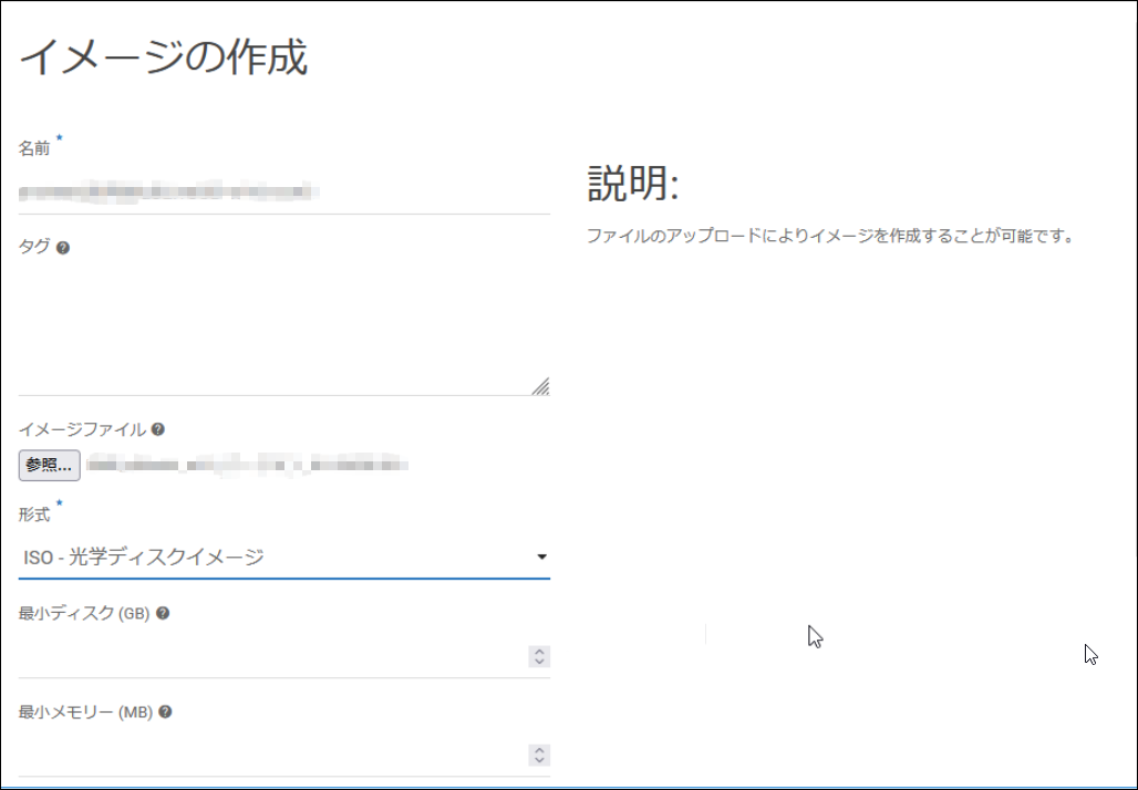 フレーバー:任意で入力(復旧に用いるためだけのインスタンスなので最少構成でも可能な場合もございますが、リソース不足でリストア失敗するケースの報告もございますため、ある程度のリソースの適用を推奨いたします。)