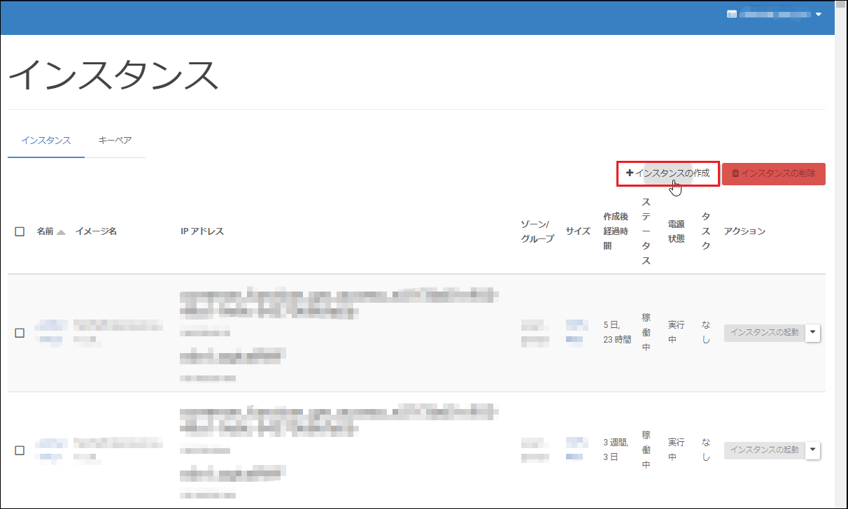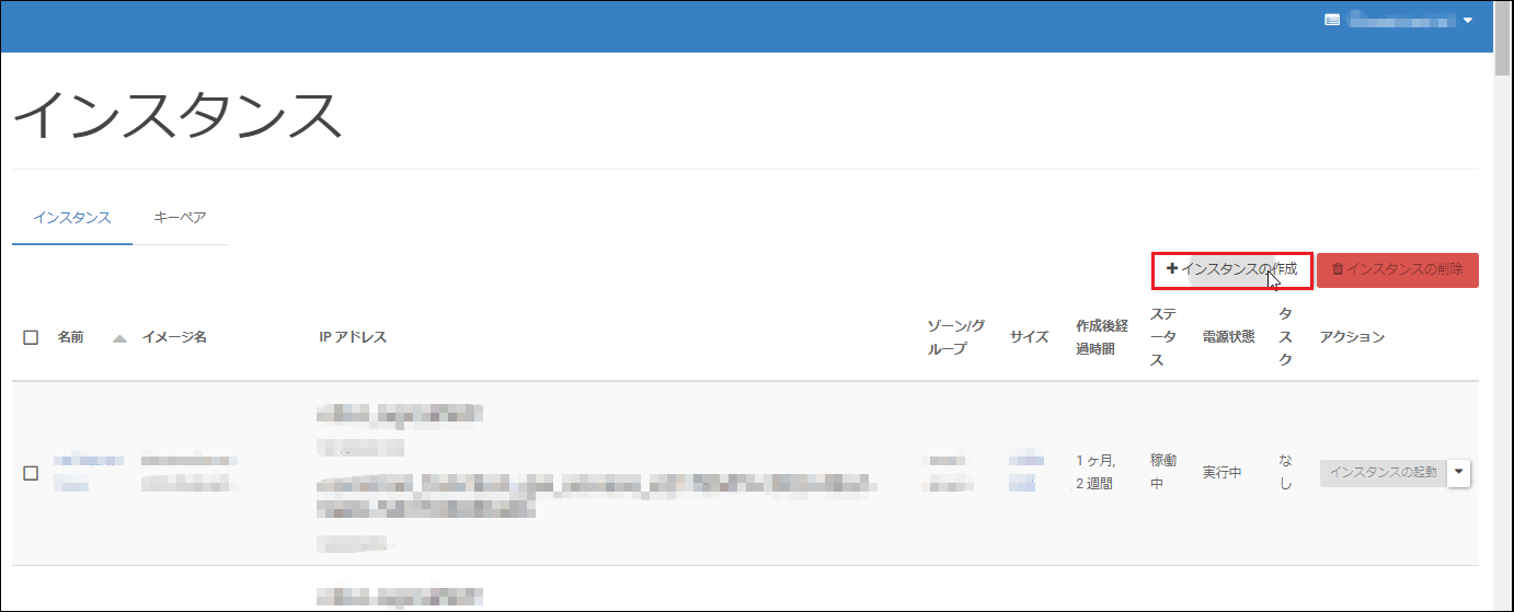 [サーバーインスタンス]—[インスタンス]—[インスタンスの作成]をクリックします。