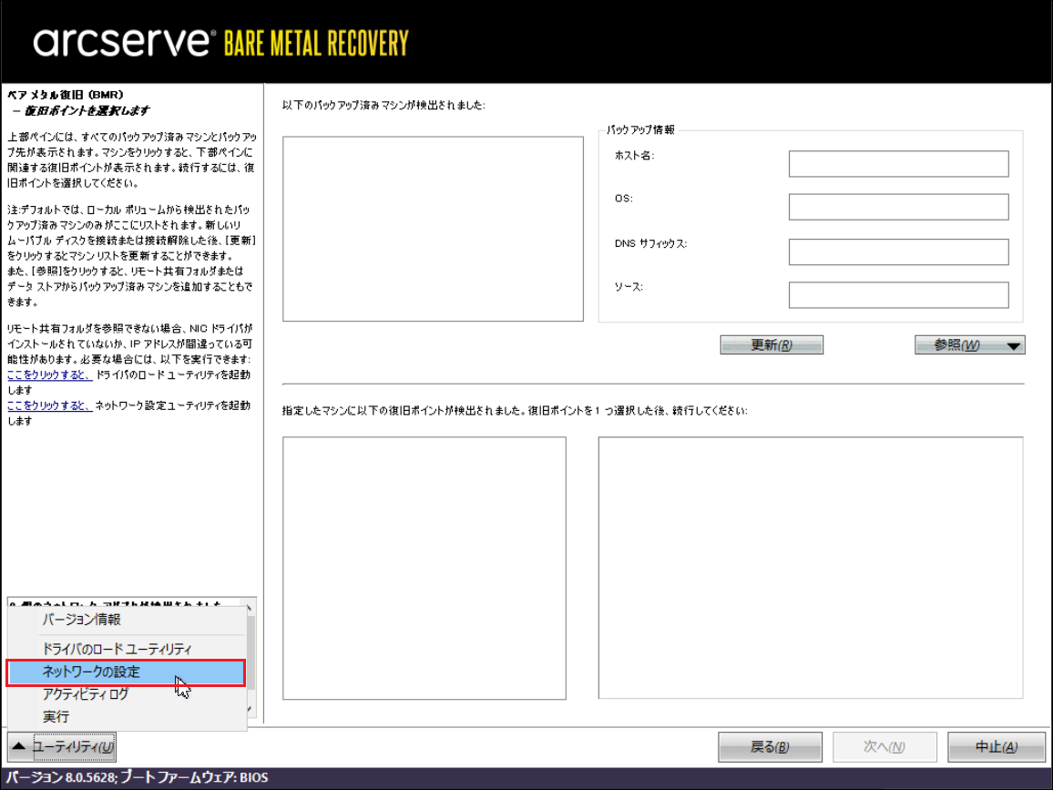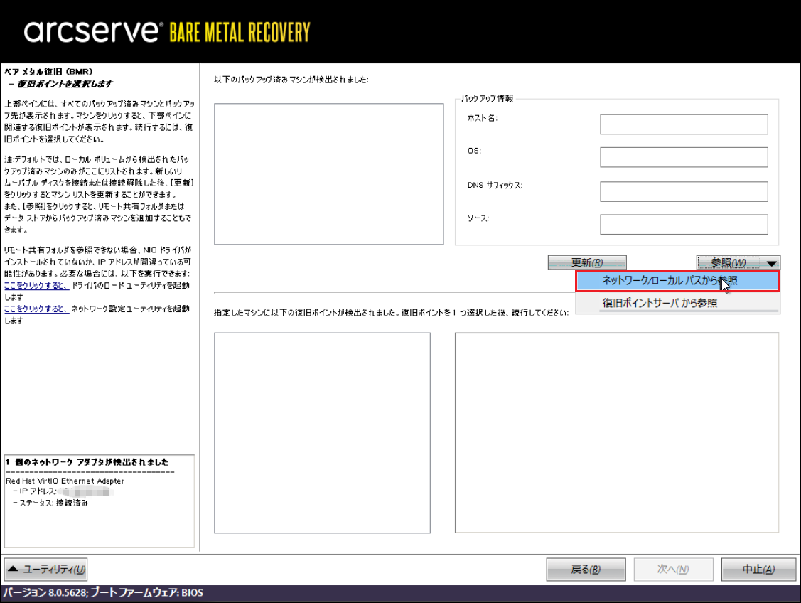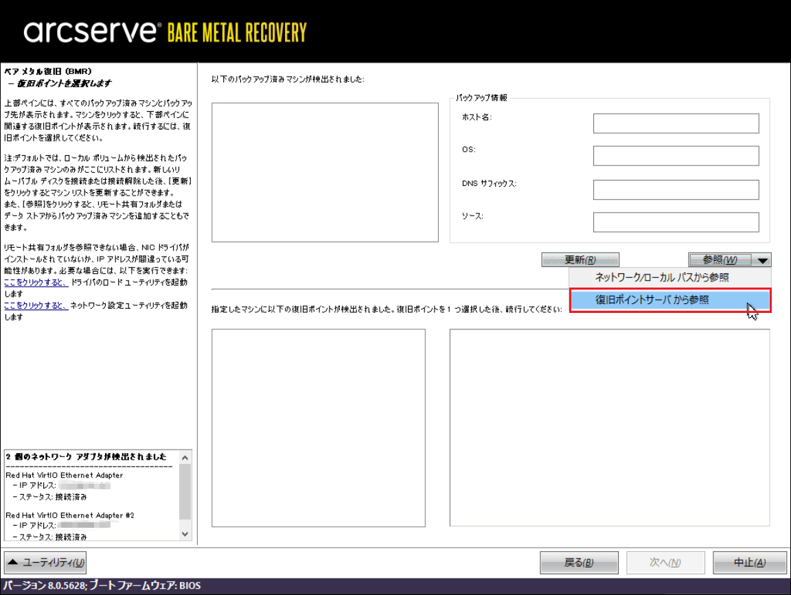 12.「復旧ポイントサーバー」にバックアップを保存した場合、下記画面の[参照]から[復旧ポイントサーバから参照]をクリックします。