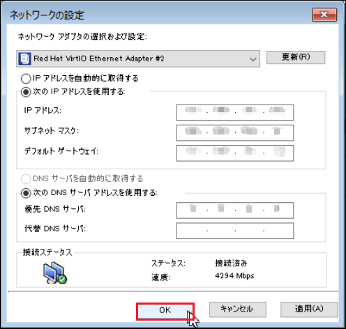 6.リストア用に作成したインスタンスのIPアドレスを入力します。入力後[OK]をクリックします。