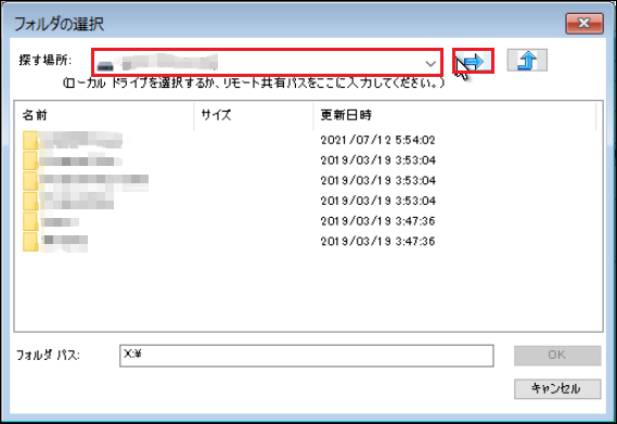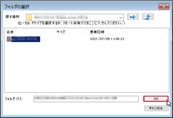10.バックアップ先フォルダー内の復旧するサーバー名のフォルダーを選択し、[OK]をクリックします。
