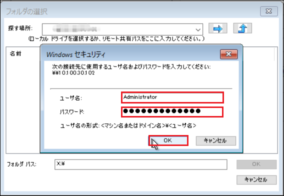 9.「ユーザ名」、「パスワード」を入力し、[OK]をクリックします。