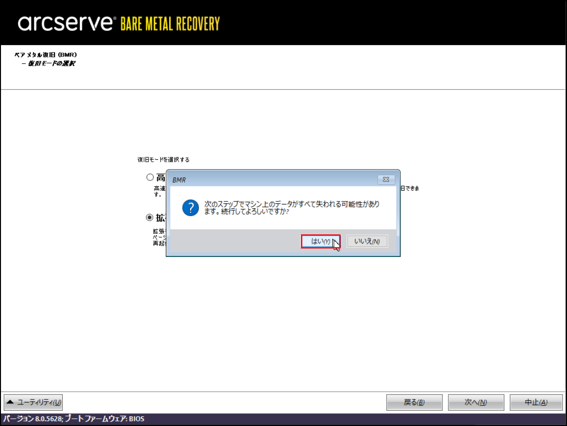 17.「BMR」ポップアップ画面が表示されたら[はい]をクリックします。