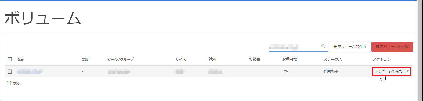 作成したボリュームの[ボリュームの編集]をクリックします。
