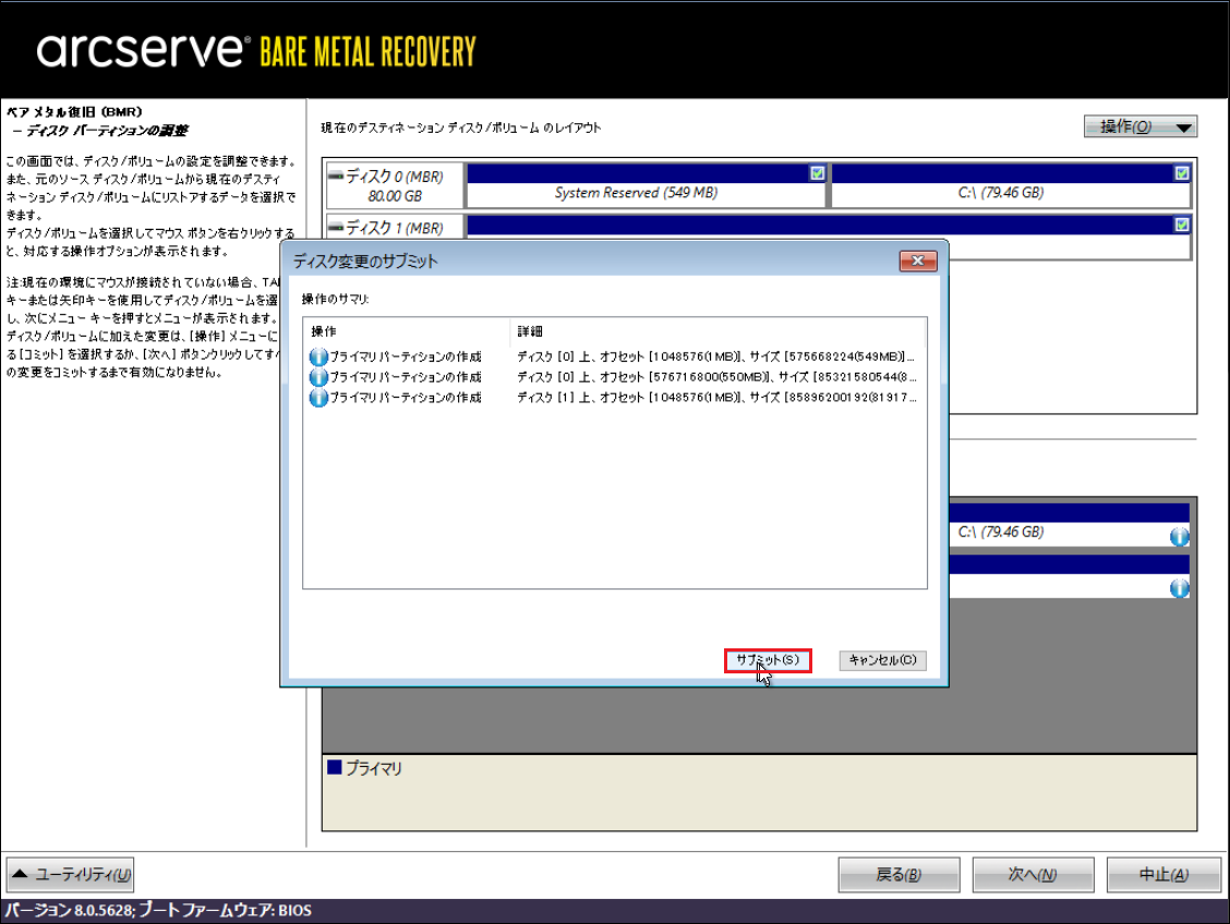 23.「ディスク変更のサブミット」画面で、[サブミット]をクリックします。
