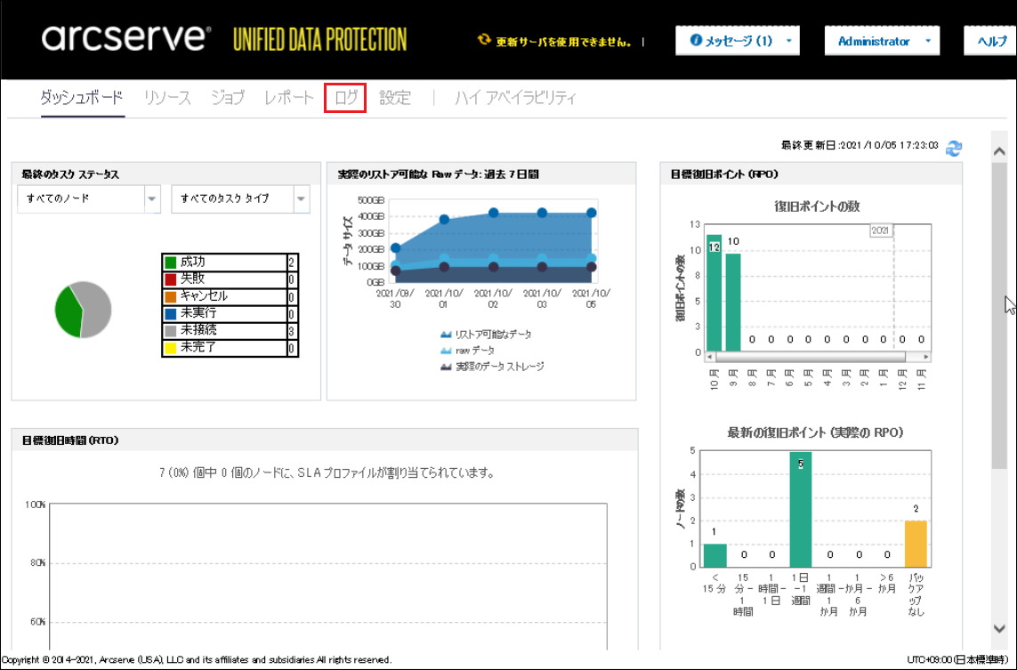 1. Arcserve UDPコンソールにログインし、[ログ]タブをクリックします。