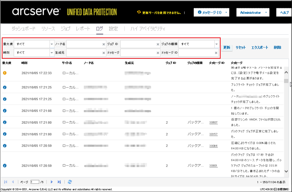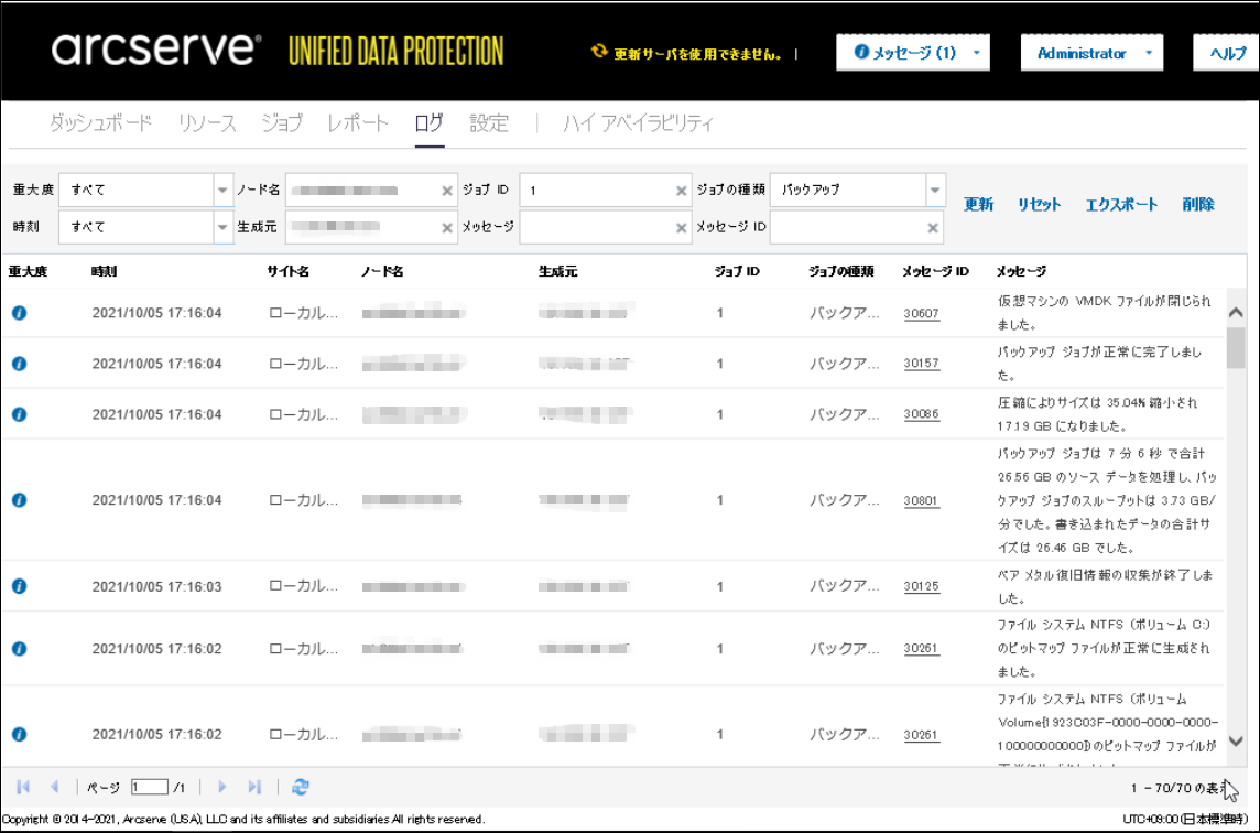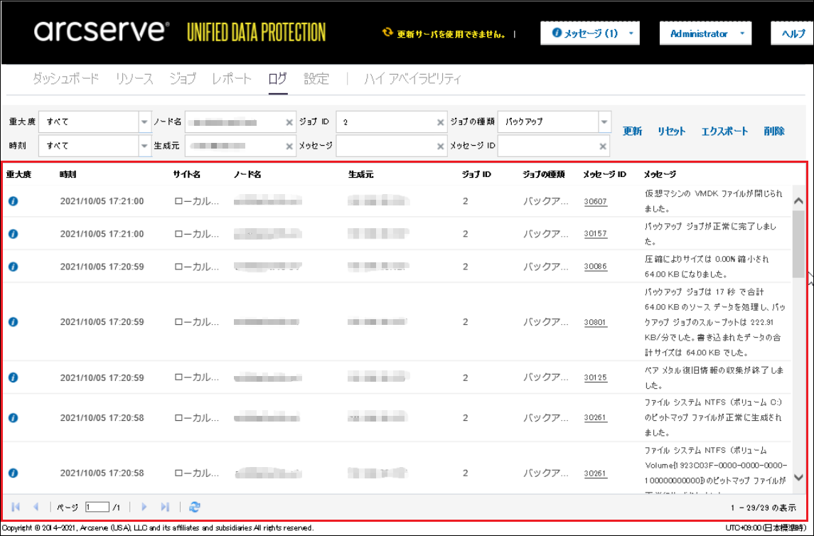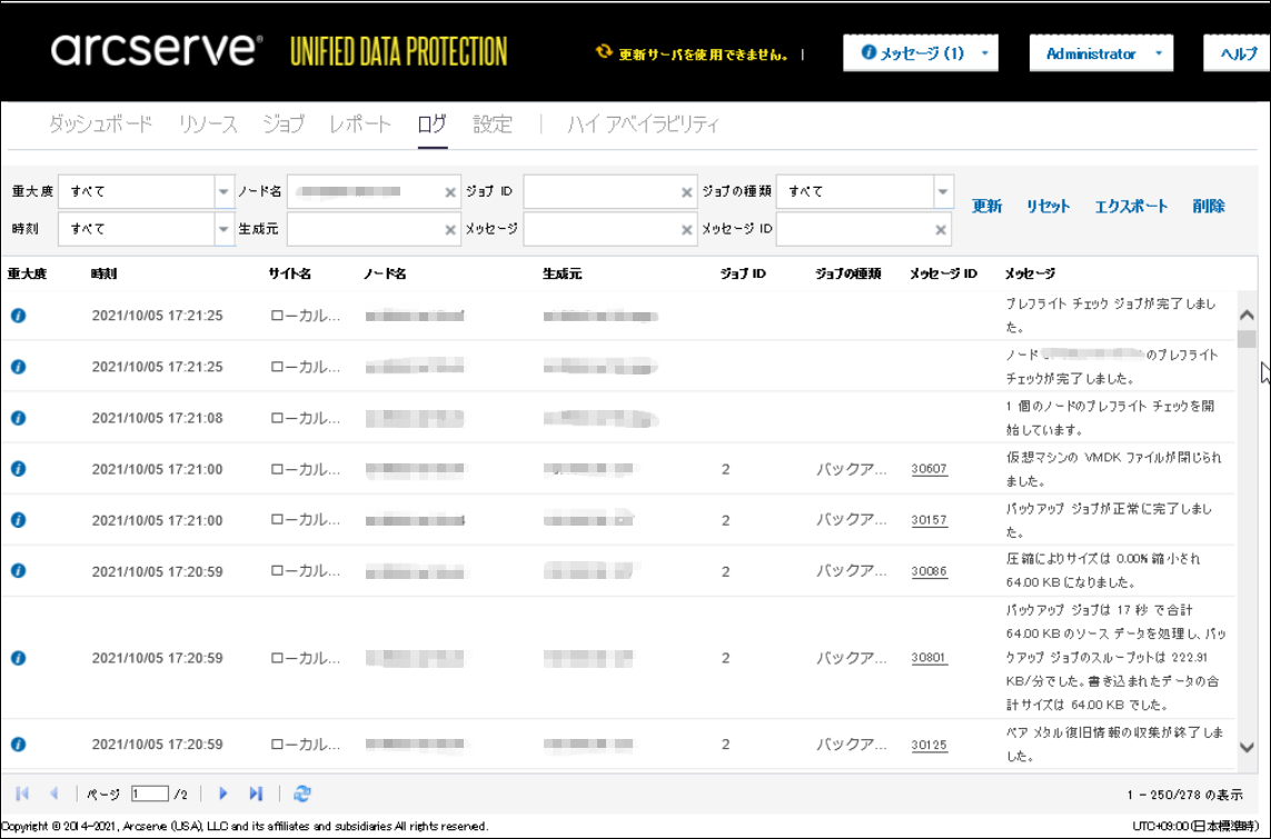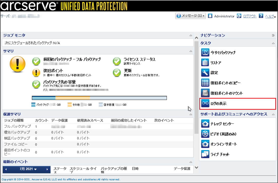 Arcserve UDPのログの確認方法を紹介します。