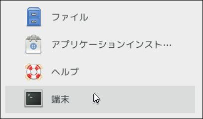 ※端末エミュレーターを開いたら、root権限をもつユーザーに変更してください。