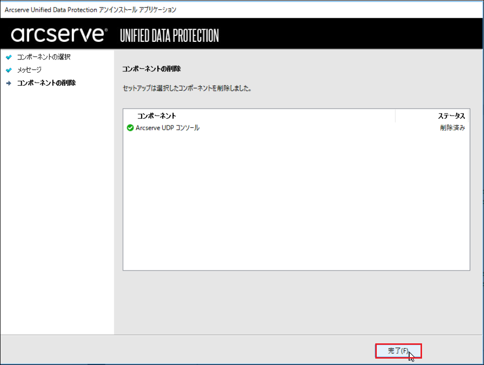 以上でArcserve UDPコンソールのアンインストールは完了です。