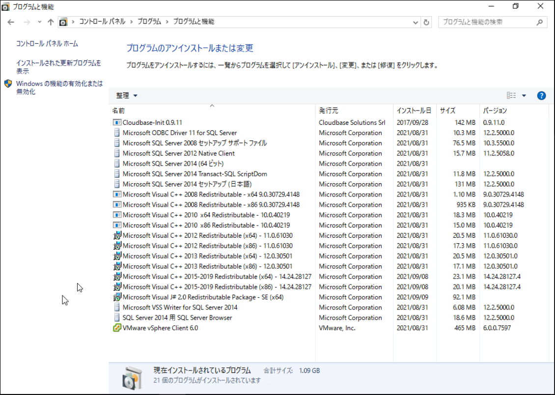 なお、コンポーネント導入時に合わせてインストールされたMicrosoft SQL Server、Microsoft Visual C++などは削除されませんので、必要に応じてアンインストールを行ってください。