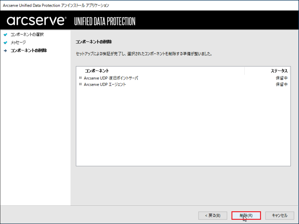 1.9.1.3. Arcserve UDP復旧ポイントサーバーをアンインストール¶