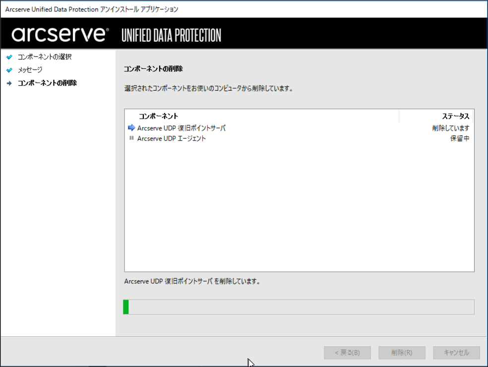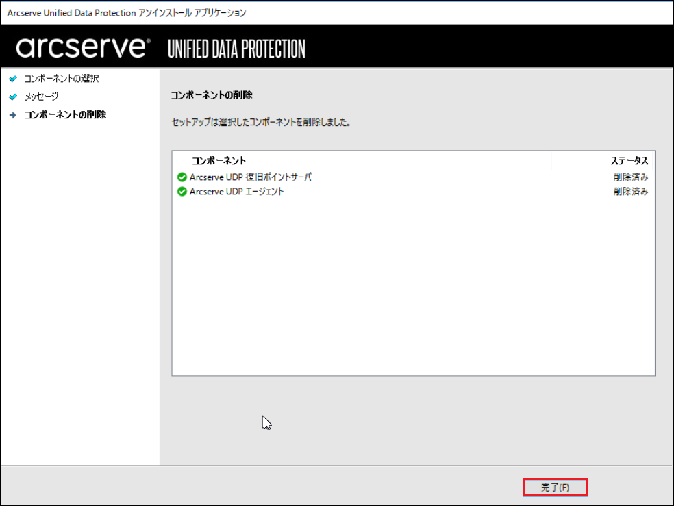以上でArcserve UDP復旧ポイントサーバーのアンインストールは完了です。