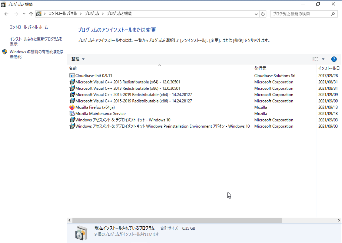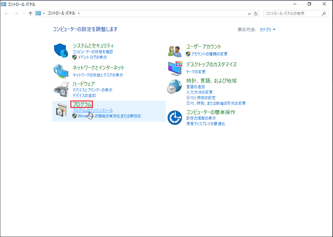 [スタート]—[コントロールパネル]—[プログラム]を開きます。