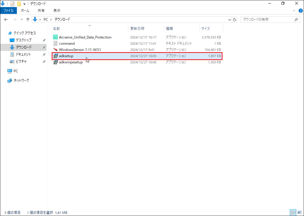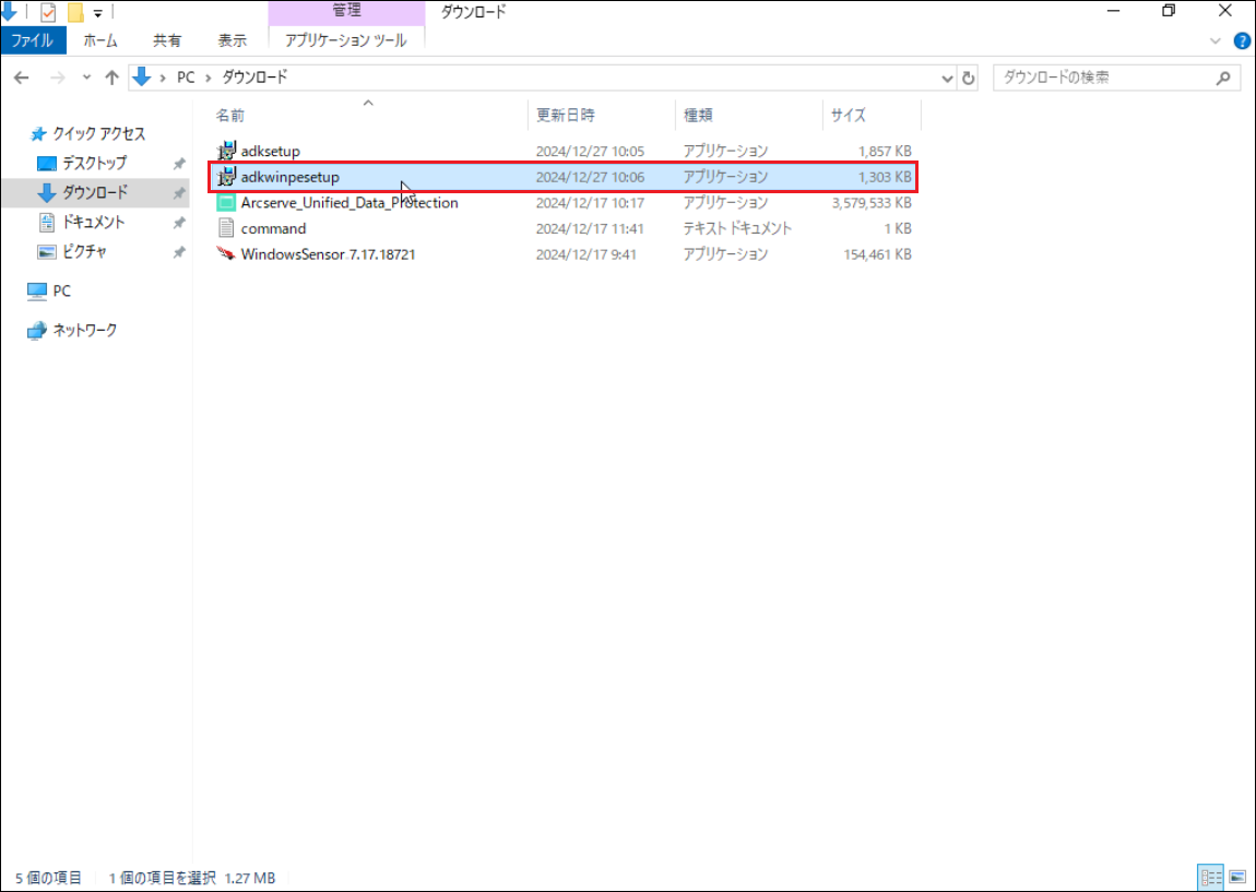 11.次に、ダウンロードした[adkwinpesetup.exe]をダブルクリックし、起動します。