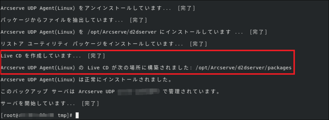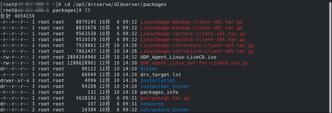 2./opt/Arcserve/d2dserver/packages 配下にUDP_Agent_Linux-LiveCD.isoがあることを確認します。