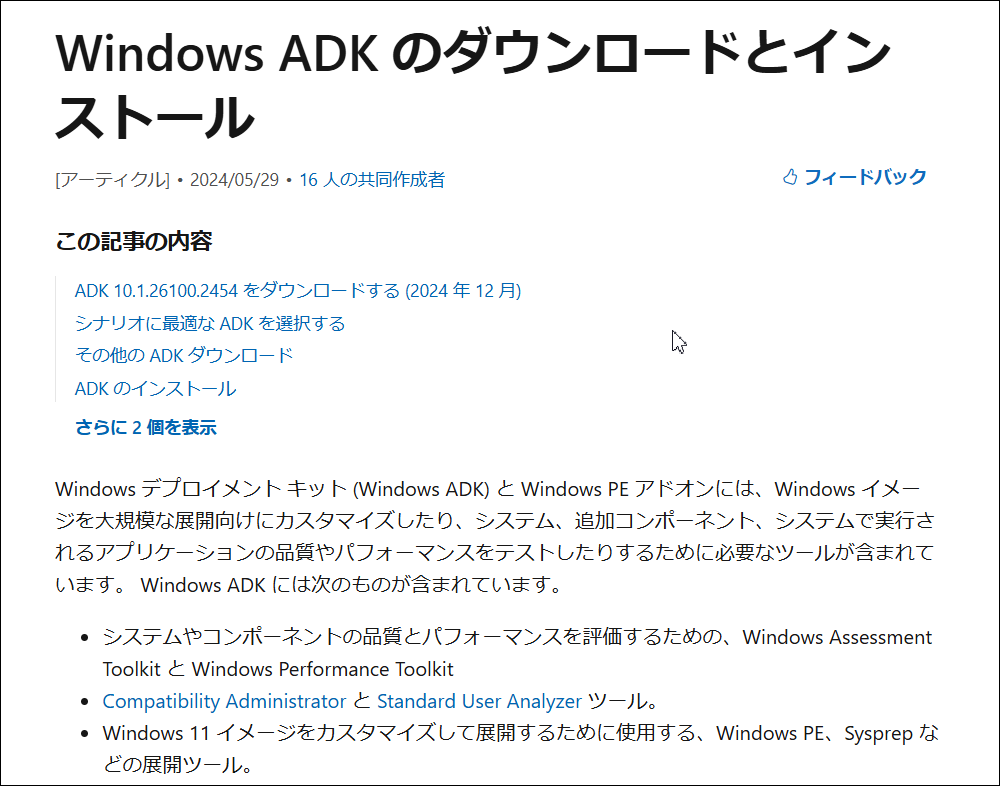 Windows ADKのダウンロード