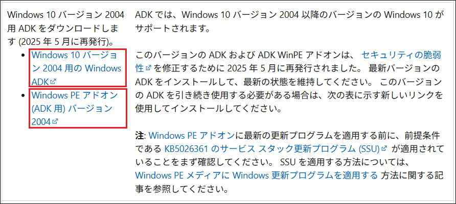 4.Microsoft社のWebページ「Windows ADK のダウンロードとインストール」(https://docs.microsoft.com/ja-jp/windows-hardware/get-started/adk-install)が開きます。