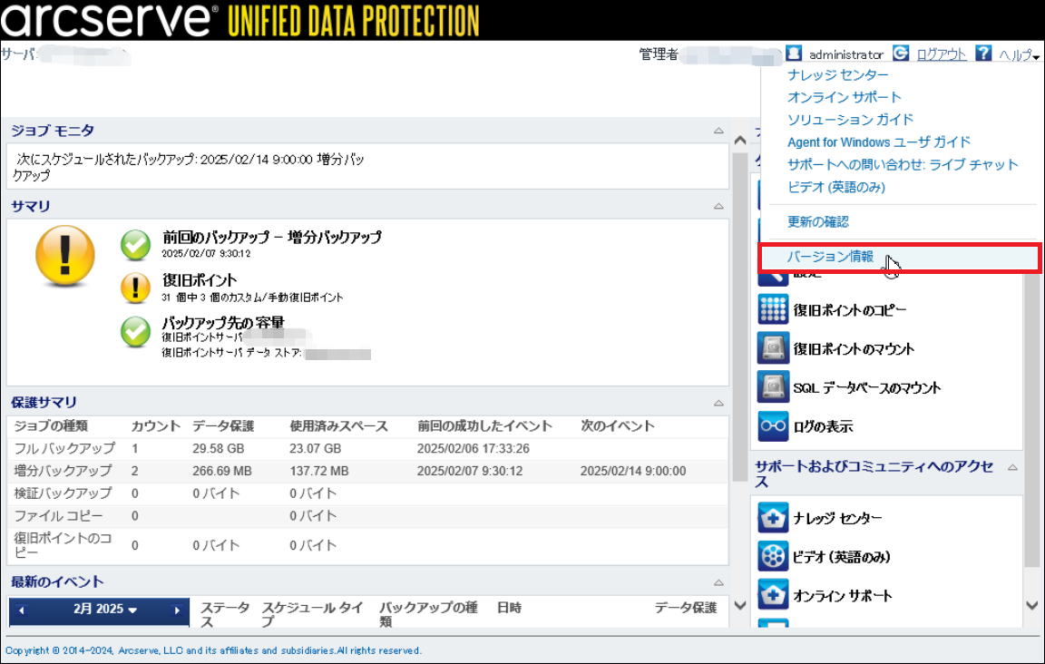 アップグレード後のArcserve UDP エージェントのバージョンの確認¶