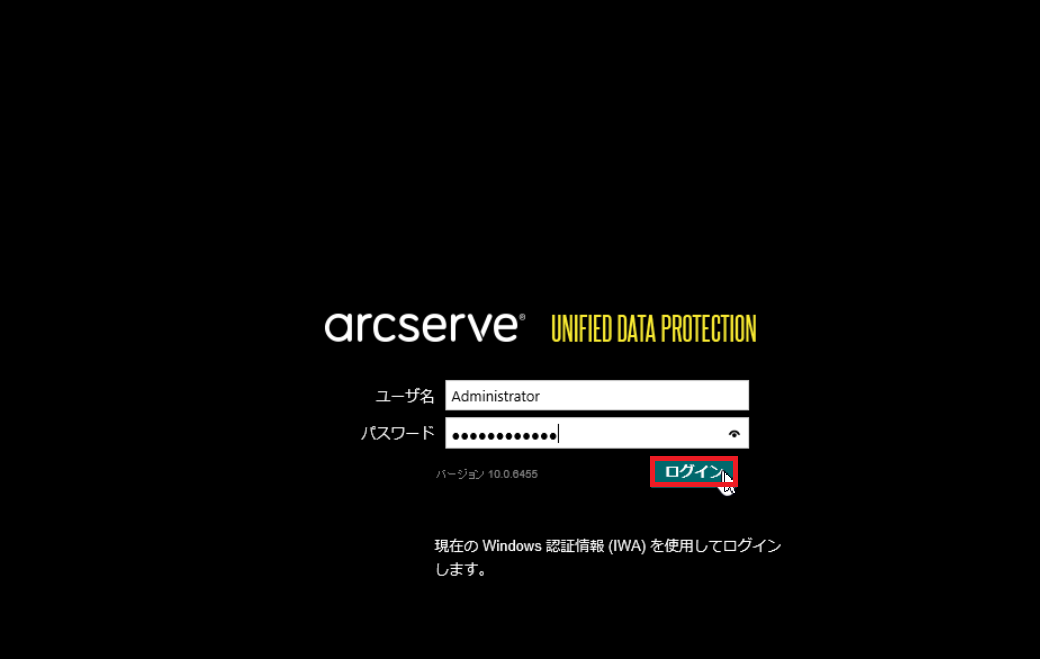 1.Arcserve UDP コンソールがインストールされているサーバーでArcserve UDP コンソールにログインします。