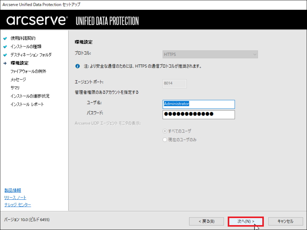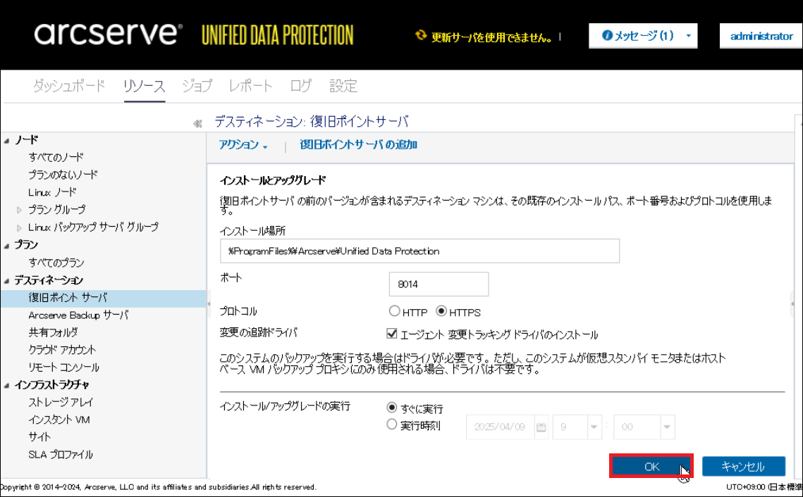 5.3.4.1. Arcserveのインストール(パターン1:UDP コンソールからのアップグレード)¶