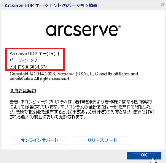 アップグレード後のArcserve UDP エージェントのバージョンの確認¶