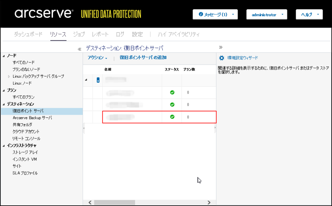 5.復旧ポイントサーバーが追加されていることを確認します。
