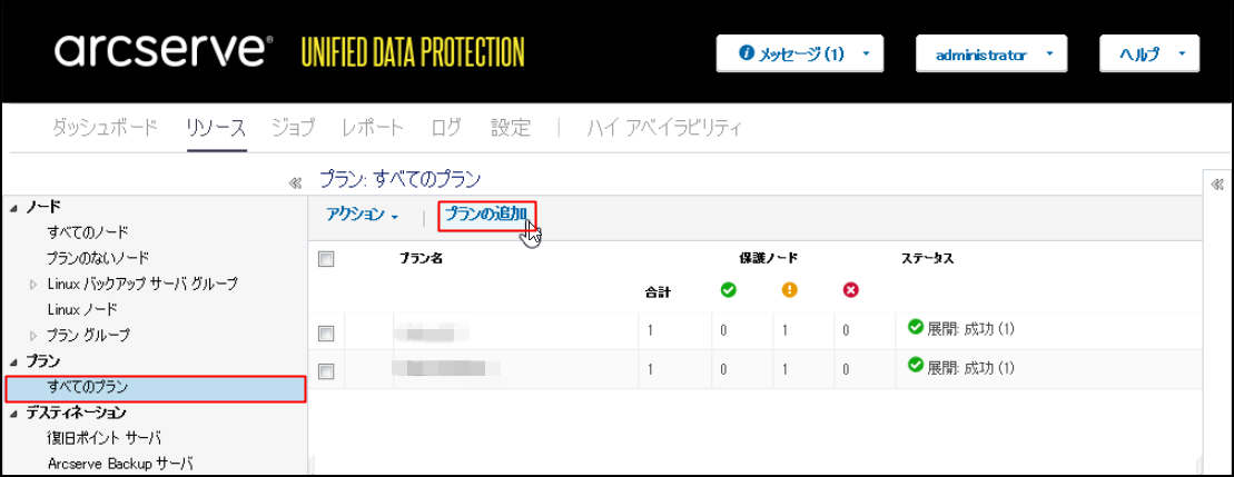 1.バックアッププランを作成します。[すべてのプラン]クリックし、[プランの追加]をクリックします。