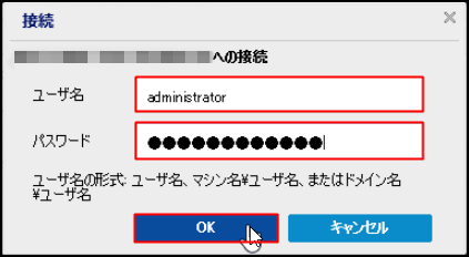 8.接続先の「ユーザ名」と「パスワード」を求められるので、各項目に入力後、[OK]をクリックします。