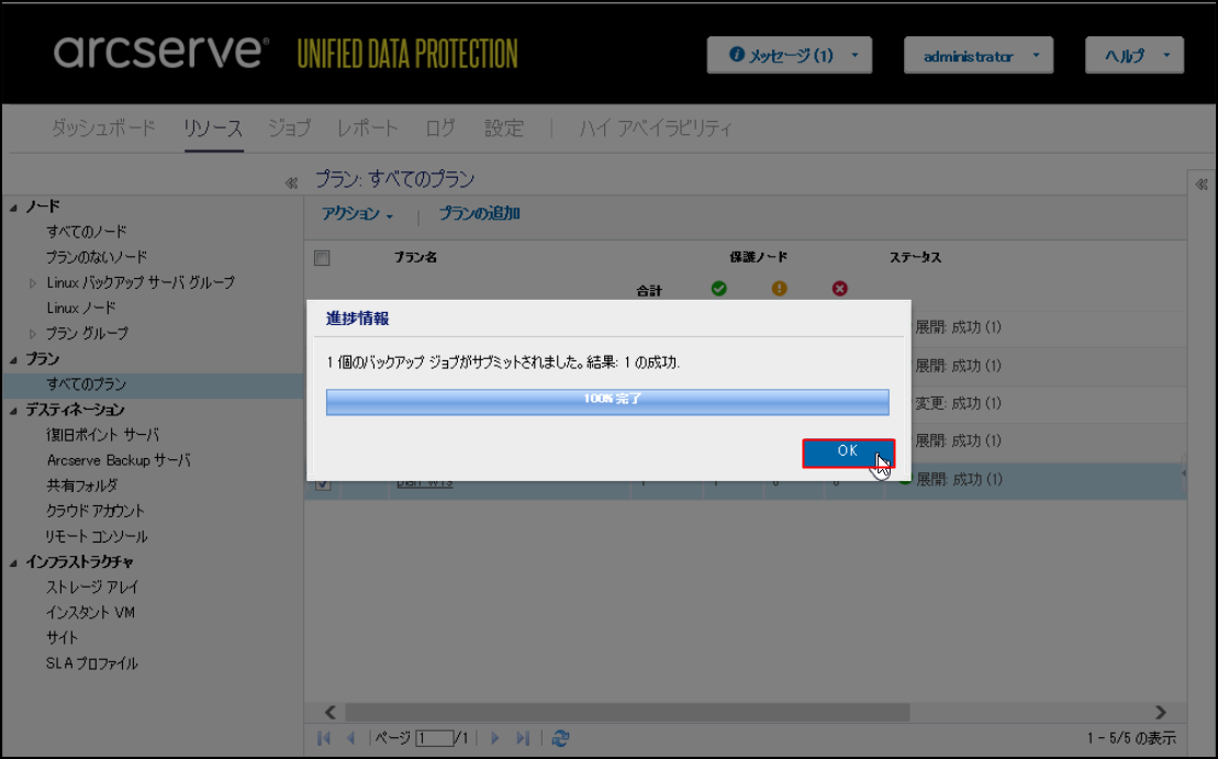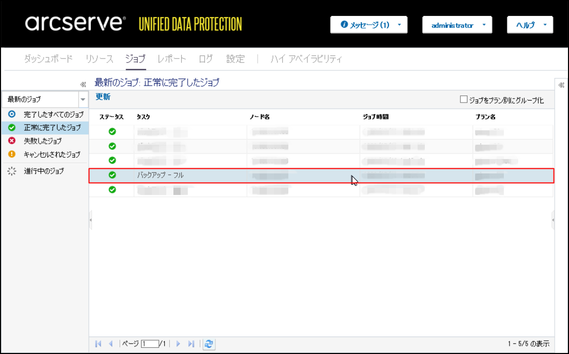 5.バックアップの正常終了後、[正常に完了したジョブ]をクリックし、バックアップが完了していることを確認します。