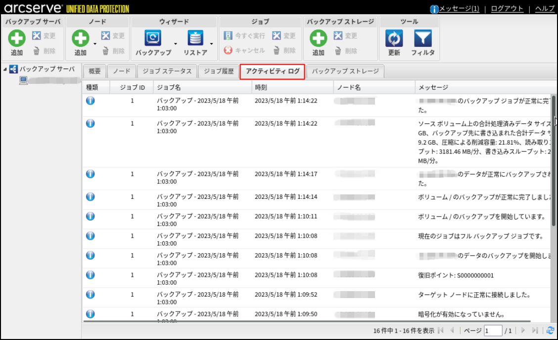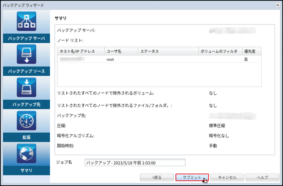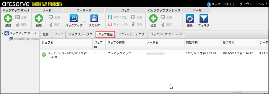 22.[ジョブ履歴]タブで、バックアップの詳細を確認できます。